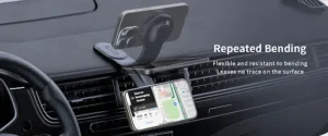 پایه موبایل داخل ماشین مگنتی رسی با استفاده از آهنربای قوی اتصال مغناطیسی قوی را فراهم کرده است؛ همچنین قسمتی که به داشبورد متصل میشود دارای چسبی قوی 3M است که در برابر گرما مقاوم است و در جادههای ناهموار هم مانع افتادن گوشی میشود.