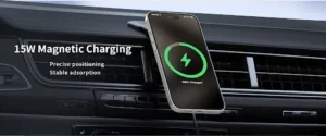 هولدر مگنتی رسی را کافی ست با زدن یک ضربه کوچک روشن کنید؛ و گوشی همراه خود را با این شارژر وایرلس شارژ کنید. این هولدر با فناوری شارژ سریع و توان 15 وات قادر است باتری گوشی شما را در مدت زمان کوتاهی فول شارژ کند و با گوشی های آیفون سری 12، 13، 14، 15و 16 و تمامی گوشیهای دارای استاندارد Qi سازگار است. البته برای گوشیهای همراه برندهایی به جز اپل نیاز است حلقه فلزی استفاده شود.