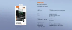 در ضمن از توانهای 5W/7.5W/10W هم پشتیبانی میکند. ورودی برابر با 5 تا 12 ولت است. همچنین به وسیله یک کابل تایپ سی قابل شارژ شدن است و به راحتی به وسیله یک شارژ فندکی میتوان هولدر را شارژ کرد.