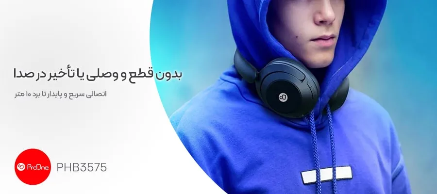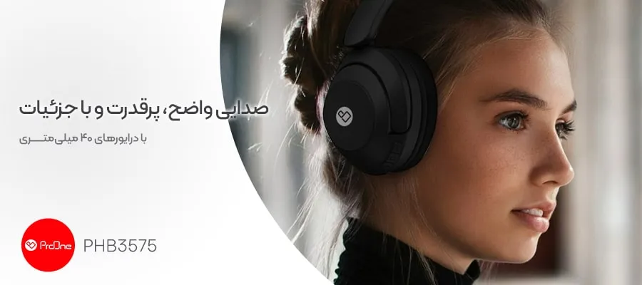 ProOne PHB3575 بلوتوث 5.0، AUX 5.0 8 تا 10 ساعت کاهش نویز، بیس قوی، طراحی ارگونومیک