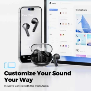 بر روی هندزفری بلوتوث SoundPeats Clear-Pods پنلهای لمسی قرار داده شده است که با لمس کردن این پنلها میتوانید کاربردهای مختلفی مانند کنترل صدا، رفتن به موزیک قبلی/بعدی، پاسخ/رد کردن تماس ورودی و … را انجام داده و در کل کاربری راحتتری داشته باشید.