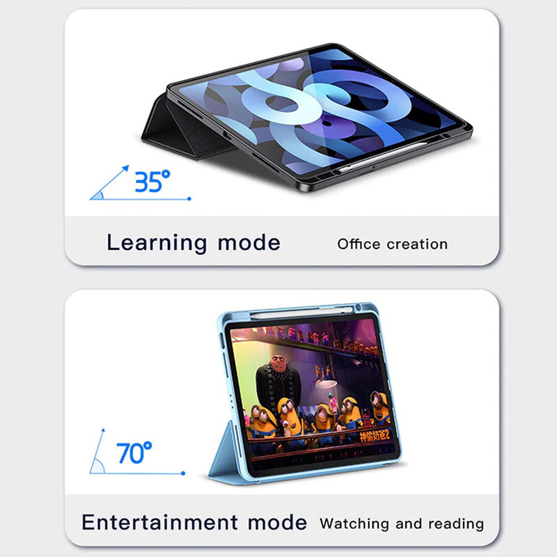 یکی از ویژگیهای بسیار کاربردی کیف رسی RPC-C01، عملکرد پایه تبلت است. با تبدیل شدن به حالت مثلثی در بخش پشتی، این کیف امکان استفاده راحت تر از آیپد 10.2 و 10.5 اینچ را برای شما فراهم میکند. این کیف قابلیت تنظیم در زاویههای 35 و 70 درجه را در اختیار شما قرار میدهد، که این امکان را به شما میدهد تا آیپد خود را در زاویهای مناسب برای خواندن، تماشای فیلم یا کار کردن قرار دهید.