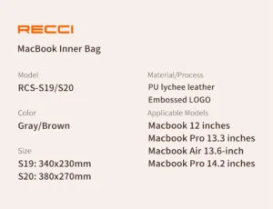 کیف مک بوک 12 اینچی، مک بوک پرو 13.3 اینچ، مک بوک ایر 13.6 اینچ و مک بوک پرو 14.2 اینچ رسی RCS-S19
